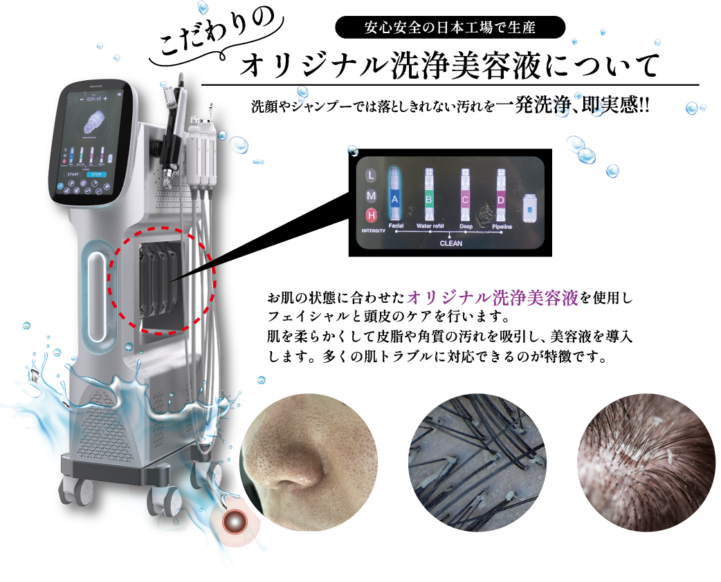 当マシンは、目に見えない超微細な穴(=マイクロチャネル)を頭皮や表皮に開けることができ、頭皮や表皮の血行を急速に繋えて細胞に栄養が届きやすい肌環境に繋えます。美容液を浸透させながら、開いた穴を体の自然治癒力により修復していく過程で分泌される成長因子により、薄毛・抜け毛、色素沈着やたるみ・くすみ、毛穴の開きなどの改善を導きます。