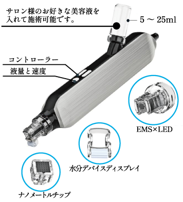 先端ニードルより毎秒 1800ppmの高噴射により、美容成分を高レベル導入させます。