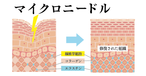 皮膚吸収経路を開いてスキンケア製品の吸収を促進するため、スキンケア製品が皮膚にさらに吸収されるようになります。開いた穴を修復しようとする肌の創傷治癒の力によって、繊維芽細胞が活発になり、コラーゲンやエラスチンの再生を促進するため、ニキビ跡や毛穴、肌質改善、頭皮ケアなどに効果を発揮します。